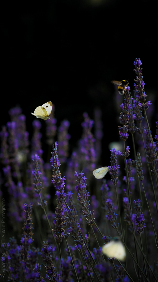 Lalavande. Une bande de papillons butine la lavande.