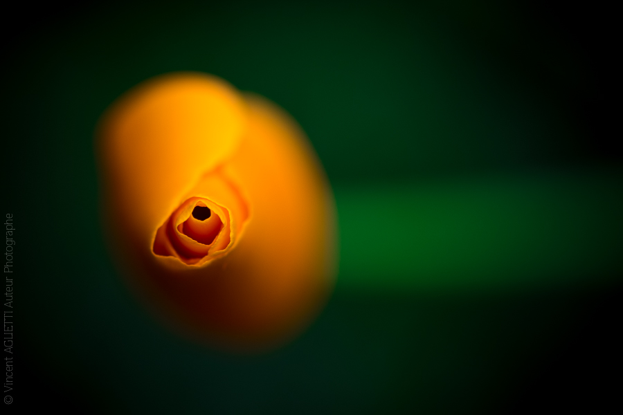 Un pavot de Californie sur fond noir.